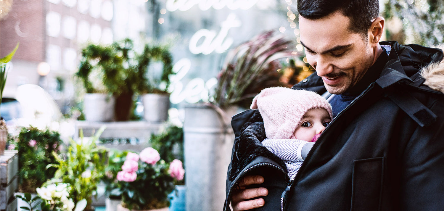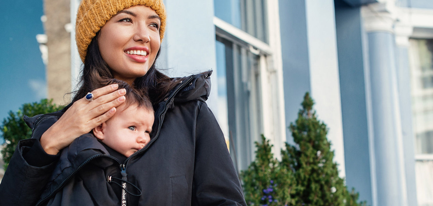 I absolutely love this jacket! What a great idea. Warm and waterproof. Keeps me and my little girl dry and snug. Thank you Wombat!!